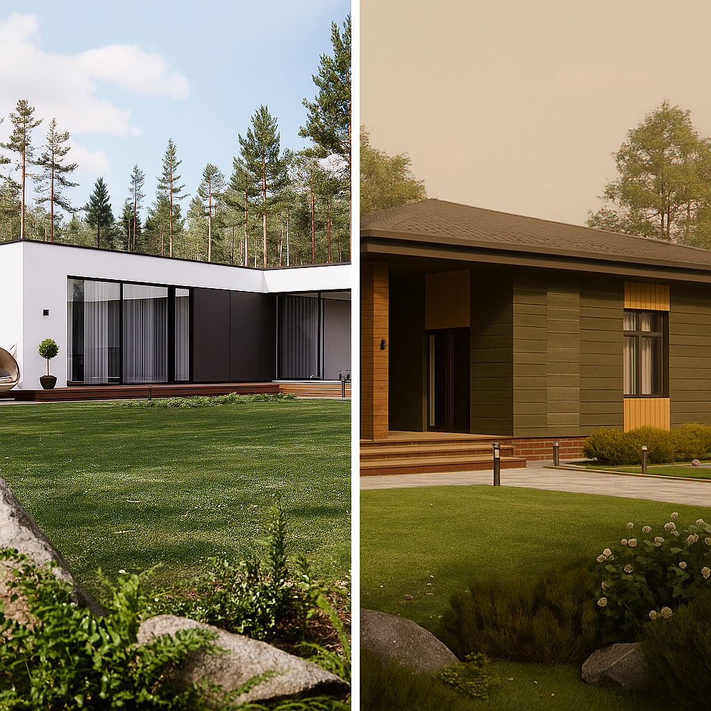 Фасад дома — это его «визитная карточка». Именно он создаёт первое впечатление о хозяевах и задаёт тон всему участку. В 2025 году архитектурная мода продолжает развиваться в сторону естественности, минимализма и гармонии с природой. Рассмотрим тренды на примере двух свежих проектов из каталога. А больше стильных проектов можно найти на catalog-plans.ru. Проект 64-16AFB, площадь 244 м², — яркий пример того, как белый цвет фасада в сочетании с чёрными вставками создаёт ощущение современного искусства. Это не просто мода, а тренд на годы: лаконичные, монохромные фасады становятся признаком статуса и вкуса. Проект 68-64, площадь 152 м², показывает другой вектор — тёплые натуральные тона. Это направление выбирают семьи, которые хотят подчеркнуть связь с природой и создать максимально домашнюю атмосферу. Монохром и контраст: белый, графитовый, чёрный. Натуральность: древесные вставки, тёплые оттенки земли и камня. Мягкие акценты: сочетание 2–3 материалов без перегруза. Экологичнос