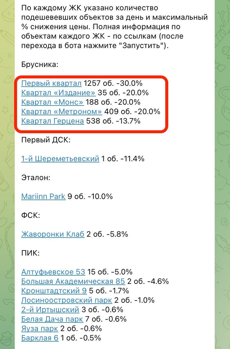 Застройщик Брусника дает новогодние скидки? 📍Пару дней назад Застройщик Брусника сделал скидку на сотни своих лотов. Размер скидки от 13 до 20%. Насколько эти скидки интересны ? Выскажу свое личное мнение, что цены на проекты Брусники по большей части не инвестиционные. Застройщик практически все время, за исключением стартов продаж, продавал по ценам выше среднего по рынку, в том числе благодаря рассрочкам, так как они одни из первых, кто начал их повсеместно применять из Московских Застройщиков. ▪️Жк Квартал Герцена проект комфорт класса- который Застройщик выкупил у Самолета, но который откровенно плохо продавался первые полтора года. И для меня загадка: для чего Брусника выкупила площадку у Мкада без метро и без инфраструктуры? По проектной декларации себестоимость строительство относительно невысокая и не превышает 150 тыс. за м2. И. Брусника планирует раскачать площадку и в какой то момент увеличить маржинальность. А пока что цены реально откатили на уровень весны. Но, че