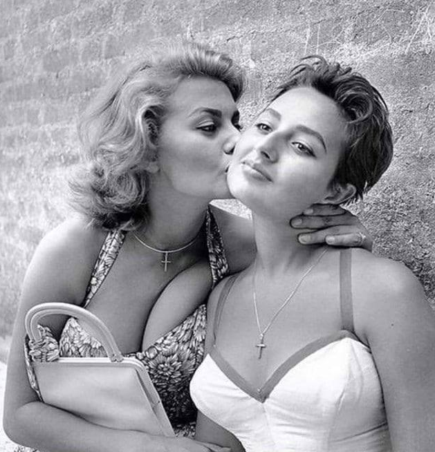 Анна Мария, младшая на восемь лет, всегда оставалась в тени знаменитой сестры. Она стала певицей, записала несколько альбомов, но никогда не достигла той высоты, которую покорила София. На фотографии видна их искренняя близость — отношения сестер остались теплыми на всю жизнь.