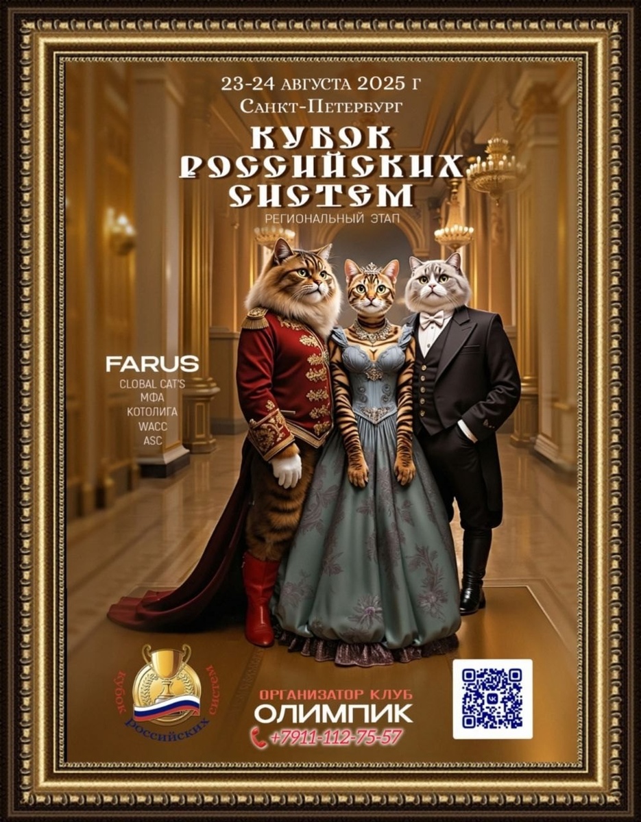 ⏰ 23 - 24 авг (5д) 🏛 #Экспофорум #Петербург #Россия #Выставка 😽 Выставка кошек и котов: КУБОК РОССИЙСКИХ СИСТЕМ по системе ФАРУС 🏆 Клуб "Олимпик" Контакты организаторов здесь: 🌐 https://www.sunny-cat.ru/vystavki-koshek.php?mesto=58-sankt-peterburg В программе: - ФАРУС ринг взрослых, - ФАРУС ринг молодых, - ФАРУС ринг ньютеров, - Шоу ДШ-ПДШ - Шоу КШ-СИА-БШ - Шоу кошек с белым "Сливки общества" - Шоу котов "Мистер Олимпик" - Шоу кошек "Мисс Олимпик" - Межсистемный ринг "Невские звезды" Десятка финалистов получит шикарные подарки. Победитель попадает в межсистемный финал. В программе и количестве шоу возможны изменения! Все монопородные шоу - бесплатно, при наборе от 5-ти участников! Из победителей всех рингов, шоу и бэстов каждого дня выбирается Best General, по итогам двух дней выставки - Best Supreme. 🧑 👨 Эксперты: 🔹 Емельянова Тамара (Президент системы, АВ FARUS), 🔹 Монахова Галина (АВ FARUS), 🔹 Шевцова О…