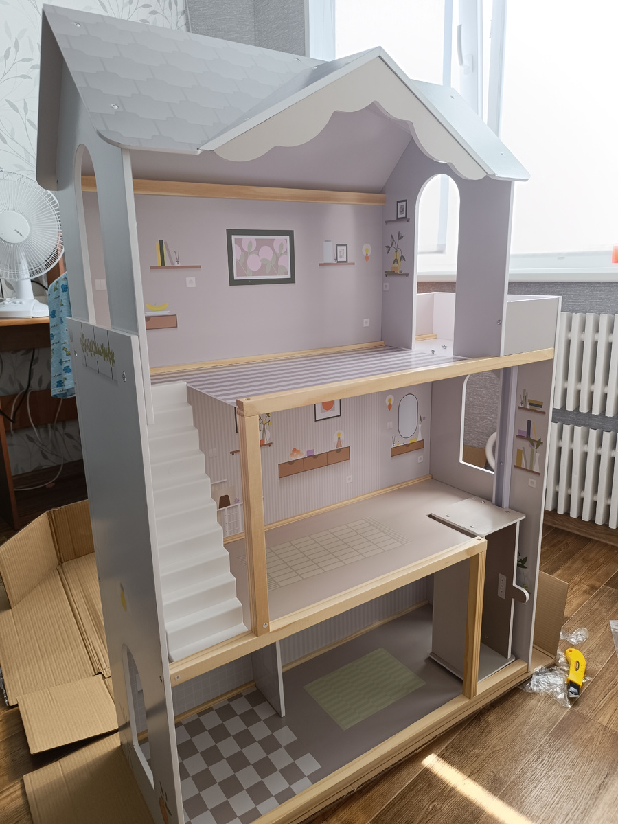 Внезапная смена тематики, не так ли?) У Яны, моей дочери, сегодня день рождения. Ей целых 5 лет) Яна, с днем рождения! Будь такой же энергичной и веселой) Расти и будь счастливой! Долго думали, что подарить, игрушек и так столько, о скольки я вместе с Оксаной не мог и мечтать в детстве. Но вот вопрос хранения игрушек и вместе с этим игровой зоны был открытым, поэтому выбрали кукольный домик. Будем считать, что для меня это сборная модель дома в масштабе 1:15 - 1:20 примерно) Набор для сборки упакован очень хорошо, доехал в целости. Весит кил под двадцать, без шуток Запаковано внутри тоже добротно, панели перестелены вспененным материалом, а вокруг до картона приставки из пенопласта Игровая мебель в отдельной коробке, каждый предмет в пупырке Инструкция очень подробная, нехватает только указания какое изображение на детали с какой стороны должно быть. Я так собрал с первого раза лифт шиворот на выворот) Детали пронумерованы - почти как на литниках с деталями у моделей) Для сборки