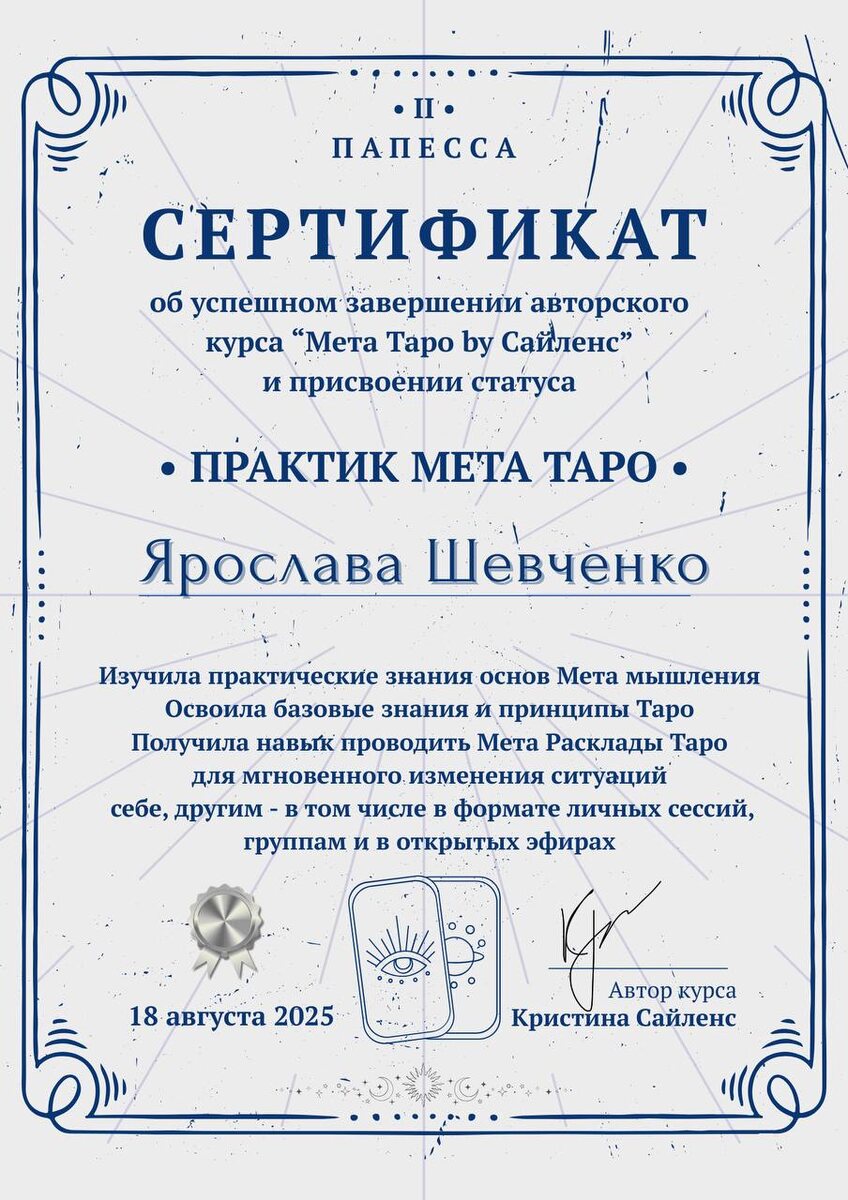 Моя младшая дочь окончила мой курс по Мета Таро 😍