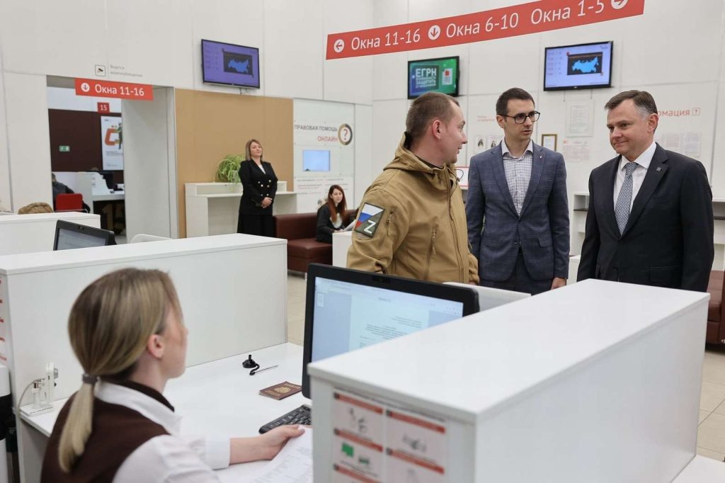Во время рабочей встречи с главой государства в Кремле Юрий Слюсарь назвал главным приоритетом помощь участникам специальной военной операции и их семьям. Он рассказал, что кроме федеральных на Дону действуют 75 региональных и муниципальных мер поддержки, среди которых выплаты, медицинская и юридическая помощь, помощь в оказании трудоустройства, жилищные вопросы и т.д. Но, говоря об этом, глава Донского региона подчеркнул, что существующий комплекс мер нужно расширить, уделяя внимание социальной адаптации и упрощению механизмов получения такой помощи. По этому поводу Юрий Слюсарь прокомментировал: «В Ростове прошел впервые «пилот» так называемого «одного окна». Это когда либо участник СВО, либо его близкий, член семьи приходит в МФЦ – подает одно заявление, а дальше МФЦ сам уже взаимодействует со всеми ведомствами по этим мерам поддержки». Владимир Путин подчеркнул, что такие механизмы нужно «совершенствовать и тиражировать». Юрий Слюсарь добавил, что по примеру Ростовской области так