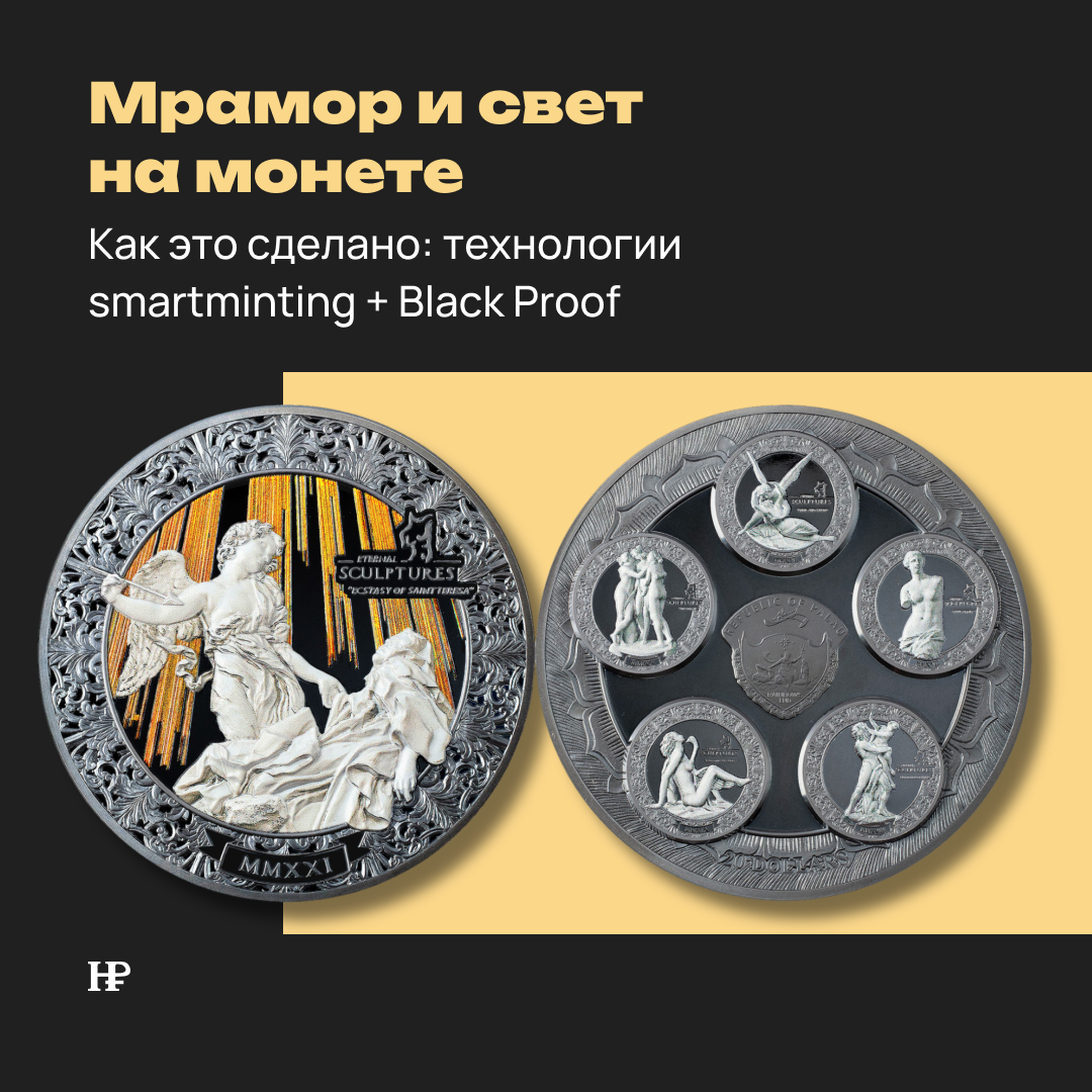 Монеты серии «Вечные скульптуры». Технологии Smartminting и Black Proof