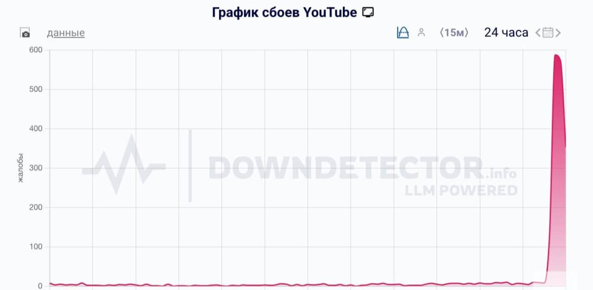Downdetector saytining ma’lumotlariga ko‘ra, Yevropaning bir qator mamlakatlarida YouTube xizmatida keng ko‘lamli uzilish sodir bo‘ldi