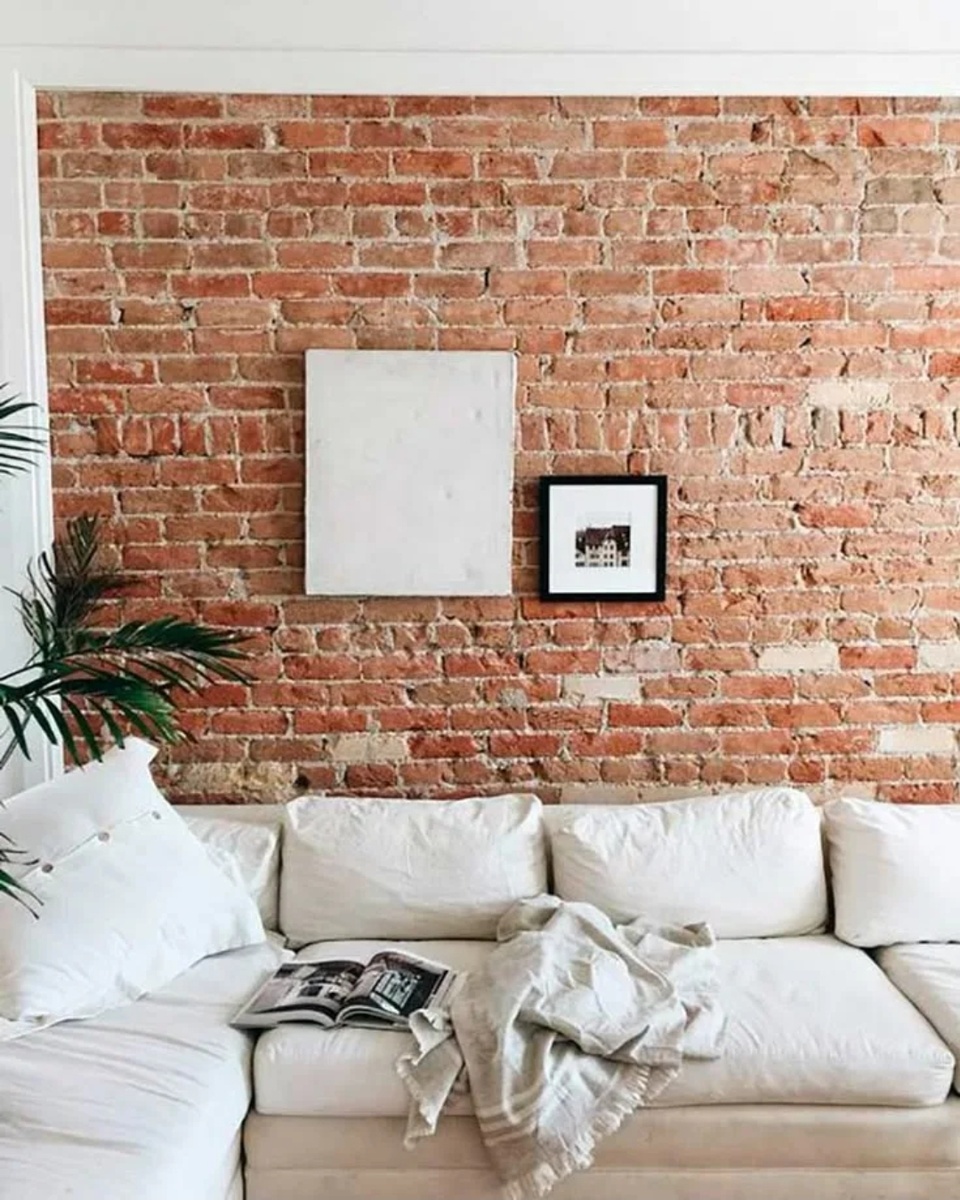 Кирпич — он разный. Можно оставить его натуральным (красно-коричневым), покрасить в белый для скандинавского стиля, чёрный для драмы или даже в пастельные тона, если хочется нежности.