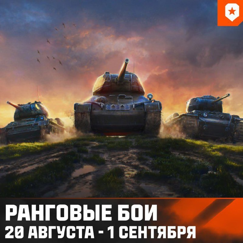 🔥 Захватывающие Ранговые бои возвращаются — и на этот раз с важными переменами! 🗓 20 августа 8:00 (МСК) — 1 сентября 2:00 (МСК). 🗞Вас ожидают: • техника одного уровня; • стандартный бой 10×10; • возможность реализовать потенциал машин VI уровня, а также получить обновленные награды; • игра во взводе из двух человек; • голосовая связь для лучшей координации действий. 🏆 Призовые бои: Ежедневно выполняя две боевые задачи, можно получить «Призовой бой». Победа в нём будет удваивать количество заработанных шевронов (при попадании в топ-7 по опыту в своей команде). 🌎 Список карт: • Малиновка; • Провинция; • Химмельсдорф; • Энск; • Рудники; • Мурованка; • Утёс; • Эль-Халлуф; • Редшир 🆕; • Степи; • Перевал 🆕; • Тихий берег 🆕. 👉 Подробности события. ☀️ Провожайте лето в жарких Ранговых боях!