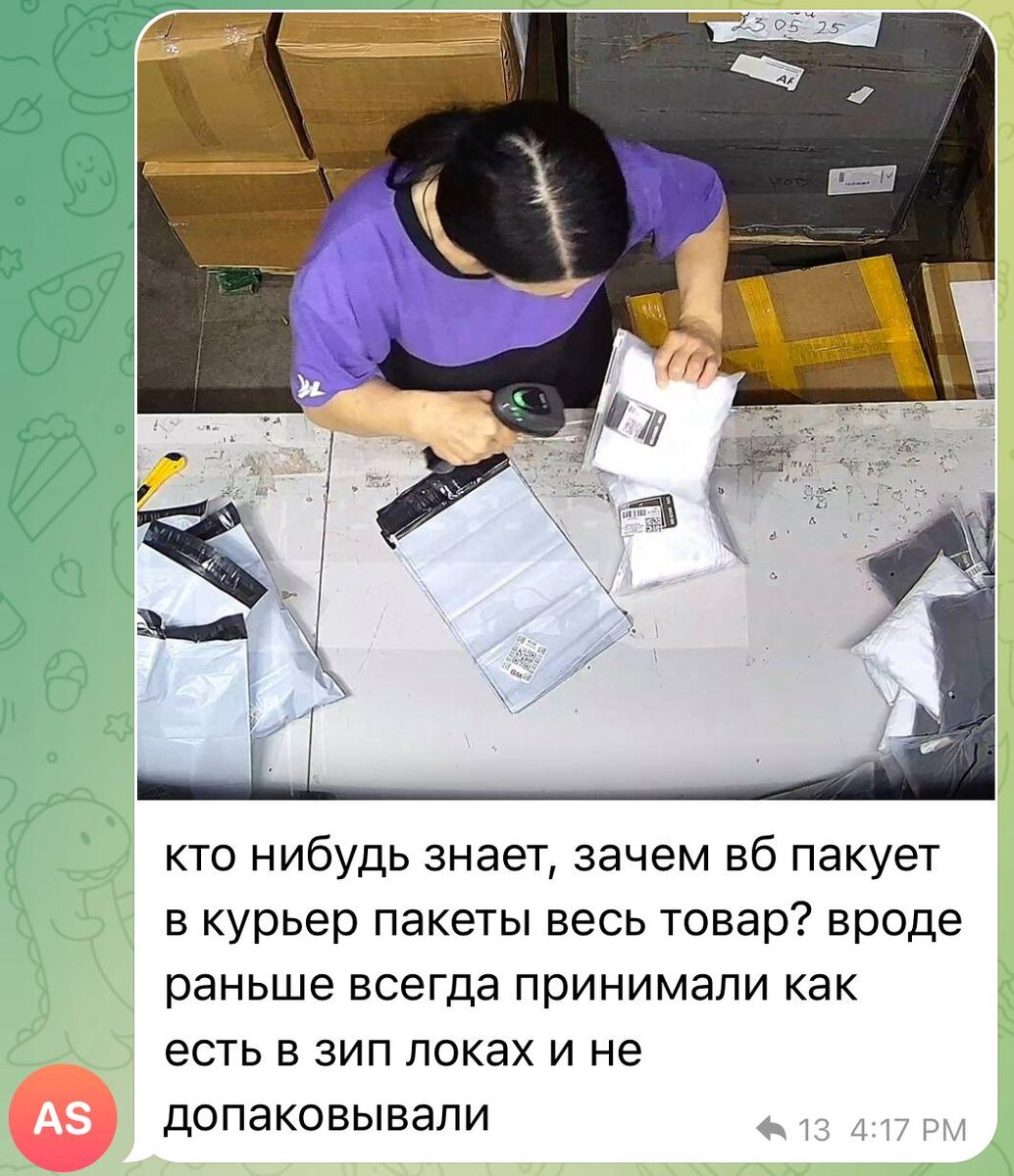 ✔️Все просто: WB все вещи после возвратов переупаковывает на складе в курьер-пакеты, если свой пакет в плохом состоянии, это 90% возвратов, проклеивают там же и проверяют на соответствие карточки и на браки. Прием первичных поставок идет в том виде, в котором отправляет поставщик.