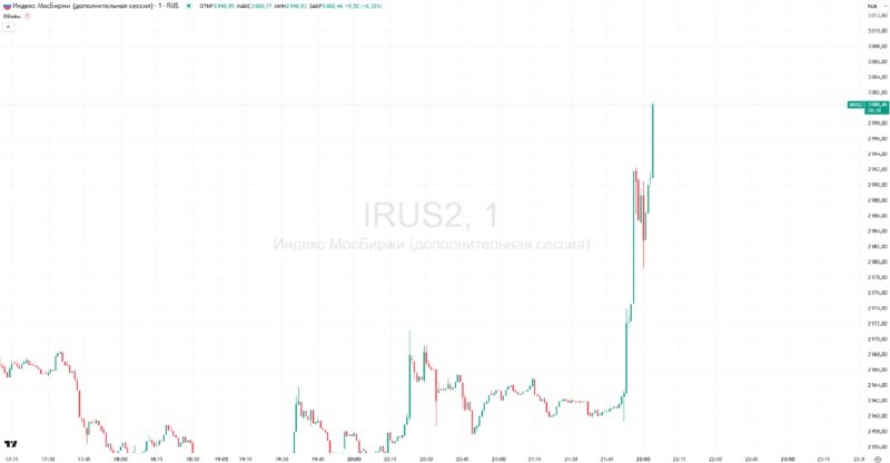 По состоянию на 22:04 мск индекс IMOEX2, отражающий динамику основной и дополнительной сессий, вырос на 1,89%, до 3000,77 пункта. На максимуме бенчмарк доходил до 3012,95 пункта.