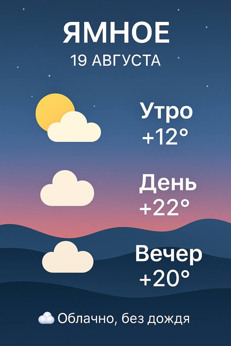 ☀️ Погода в Ямном на сегодня, 19 августа