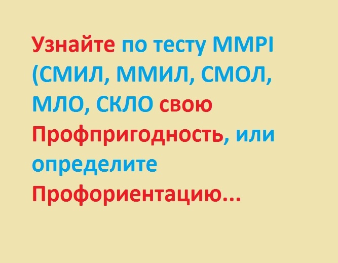 Сегодня Вы узнаете, не только как по теcту MMPI определить свою профессиональную годность (или негодность) к тому или иному виду деятельности, но и сможете, пройдя любой адаптированный под Россию тест MMPI - СМИЛ, ММИЛ, СМОЛ, МЛО или СКЛО, лучше познать себя, тем самым пройдя самостоятельно профориентацию.