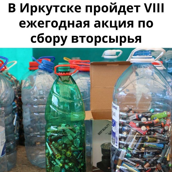 В Иркутске пройдет VIII ежегодная акция по сбору вторсырья ❇️Благотворительный Фонд “Подари Планете Жизнь” с 19 по 22 августа в восьмой раз проведет в Иркутске акцию по приёму вторсырья #Скажи_мусору_НЕТ! Временный пункт будет работать в каждом округе города по следующему расписанию: 📍19 августа - ТЦ "Первомайский", ул. Вампилова, 2/2 📍20 августа - ул. Розы Люксембург, 359 (супермаркет “Слата”) 📍21 августа - ТЦ "Цветной парк", ул. Байкальская, 250/1 📍22 августа - Сквер им. Кирова, автопарковка ул. Ленина, 14Б Время приёма вторсырья с 9.00 до 20.00. Все желающие смогут сдать на переработку: ♻️макулатуру, ♻️пластик, ♻️жестяные и алюминиевые банки, ♻️сложные виды вторсырья (пластиковые карты, пластиковые трубочки, киндер яйца, пустые блистеры, ручки, фломастеры, CD-диски, зубные щетки и др.), ♻️батарейки на утилизацию, ♻️одежду и обувь для дальнейшего использования, ♻️корм и овощи для животных в приютах и многое другое. За определенные объемы сданного вторсырья будут начисляться