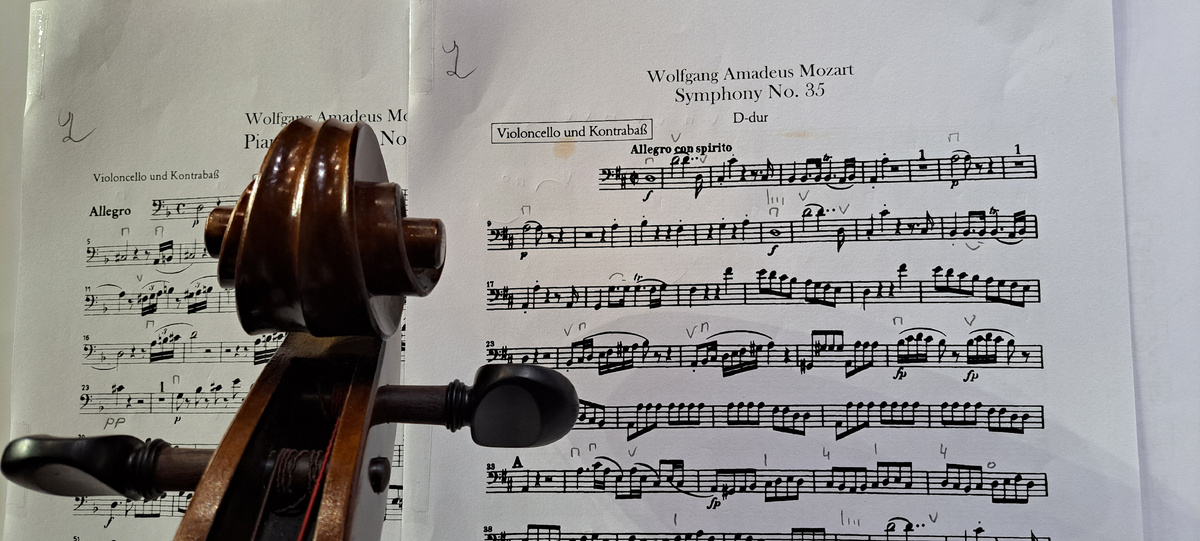 Она начинается мощными аккордами, будто открывает дверь в праздничный зал XVIII века. 35-я симфония Моцарта, известная как «Хаффнер», – это музыка, полная энергии, изящества и неожиданных поворотов - сегодня на наших пультах в Beijing Union Symphony Orchestra. В 1782 году Моцарт получил заказ от семьи Хаффнер – богатых зальцбургских меценатов. Им нужна была торжественная серенада для важного семейного события. Композитор, занятый личными делами, свадьбой и переездом в Вену, писал музыку в спешке, но… торопился красиво! Через год, готовя программу для очередного концерта, Моцарт переработал серенаду в симфонию – убрал один марш, добавил партии духовых – и произведение заиграло новыми красками. Первая часть (Allegro con spirito) – это жизнерадостные темы, где струнные и духовые будто соревнуются в блеске. Вторая часть (Andante) – изысканный диалог скрипок и деревянных духовых, полный лёгкой меланхолии. Менуэт (Menuetto) возвращает в мир балов и галантных жестов, а финал (Presto)