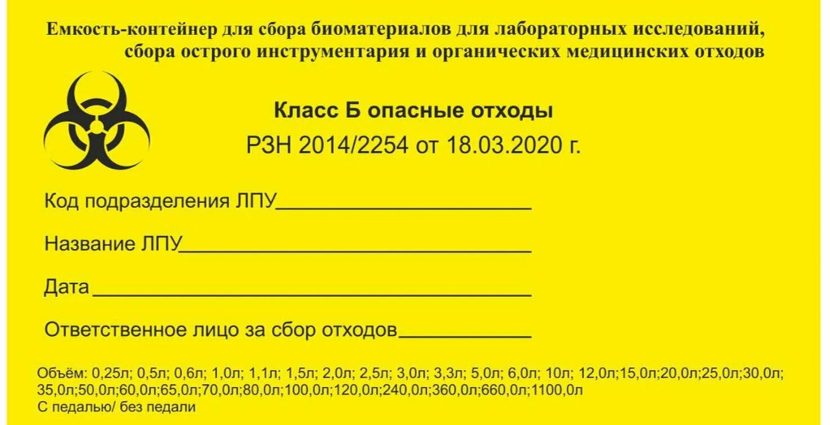 Как подписывать одноразовые ёмкости с отходами класса Б