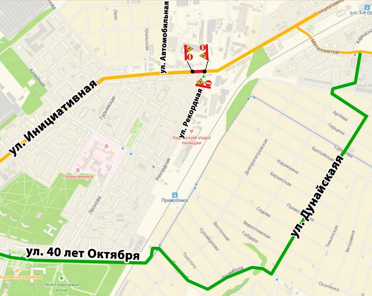 В Кемерове с 21 августа закроют для движения транспорта перекрёсток улиц Инициативной и Рекордной. Ограничение требуется для продолжения работ по капремонту Инициативной. Закрыт перекрёсток будет с 22:00 четверга, 21 августа, до 5:00 понедельника, 25 августа. «Это необходимо для проведения работ на инженерных сетях в рамках капитального ремонта улицы Инициативной — устройства канализации и защиты тепловых сетях», — рассказали в администрации города. Автомобилистам рекомендуется выбирать альтернативные пути проезда. Весь общественный транспорт, следующий через перекрёсток, также пойдёт в обход закрытого участка. Схема: Транспорт столицы Кузбасса / Telegram