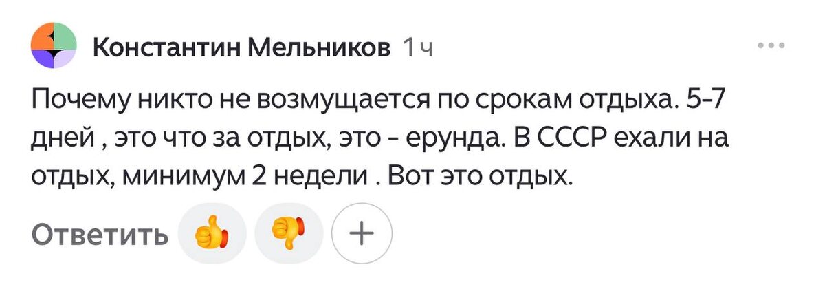 Мои дорогие недовольные критики, как же я вас понимаю! Да, я бессердечный монстр, который осмеливается показывать вам цены только на жалкие 7 ночей. "Что это за отдых?!" А вот в СССР, да! Там ехали минимум на 2 недели: