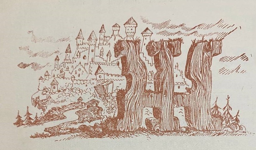 Уже больше половины дороги пробежал, встречает корову и спрашивает, не видала ли та девчонку. Подумала корова и отвечает, что видела одну, - та только что пробе жала ко дворцу на курьих ножках. Песьеглав, как бесноватый, назад к своему дворцу. Обшарил все комнаты, каморки, самые последние уголки и закоулки, и под столом-то искал, и под скамьями, ну везде, везде. Не нашел сиротки. Унялся наконец, спать пошел, потому что от этой беготни и поисков вконец уморился. Да по дороге вспомнил про свои мешки, что в тот вечер в кухне на ларе забыл. Вбегает в кухню, кинулся к своим мешкам, видит - меньшего-то нету. Смекнул, что сиротка с доброй долей его богатства убежала. Позеленел от злости, зубами скрежещет, да ничего не поделаешь, побрел, понурив голову, спать, а по дороге все думает, как бы ему этой девчонке отомстить.