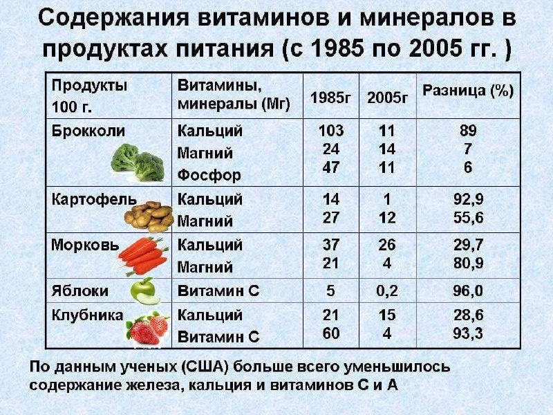 Посмотри как изменился состав по микроэлементам, а сейчас эта ситуация еще хуже и поэтому, обойтись без БАД к сожалению, ни как не