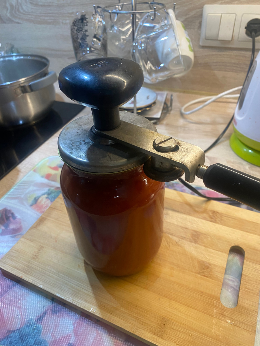 Сама удивилась что для меня этот простой Советский ключ очень понятен и там сильнее не закрутишь, есть ограничение, а у меня всегда сидел страх, что закручу так что лопнет банка с горячим соком. А особо опыта с таким ключом то и не было, потому что появились банки с закручивающимися крышками, вот на них я и подсела . В молодости всегда ждала мужа со втрой смены, чтобы закрутил. Всё подготовлю к закрутке и жду когда придёт с работы, закрутит, а сама даже и не пробовала ))) А тут только посмотрела на ключ и всё понятно, есть ограничения. Видимо хотела чтобы муж принимал участие, а может и правда ключ был другой, ведь ещё был как с рожками, вниз рожки опустил и всё закрыто, не знаю куда он у меня делся, даже ведь помню что был красного цвета, выкинуть точно не могла, сломаться не должен, остаётся только отдала кому либо за ненадобностью. А ведь мне понравилось так закручивать, а я все банки такие развезла по подругам, но теперь уже поздняк метаться))) Сок мне понравилось варить, ничег
