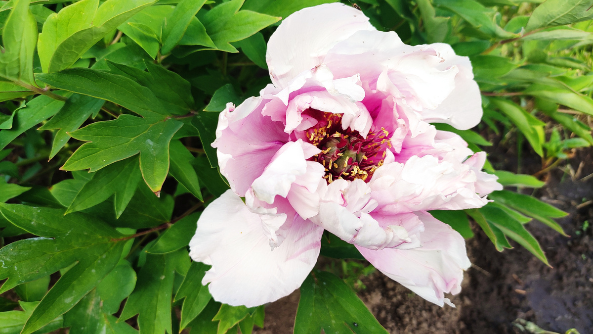 Повод не откладывать деление: редкое/неравномерное цветение, оголённая «сердцевина», расползание куртины и повторяющиеся болезни — классические сигналы к делению. Оптимальное окно — 15 августа – 10 сентября (в холодных регионах завершайте до конца августа). Пионы переносят пересадку в это время лучше всего: корни ещё активны, жара спадает, а почки возобновления уже заметны. Идеальный интервал — каждые 8–12 (до 15) лет. Молодые, стабильно цветущие кусты не тревожим: лишняя пересадка выбивает растение из ритма и задерживает цветение. Готовим яму 60×60×60 см. На тяжёлых почвах — дренаж 10–15 см. Заправка (без навоза и азота!): 10–15 кг перепревшего компоста/перегноя, 150–200 г двойного суперфосфата, 60–100 г сульфата калия. При pH < 6 — 150–200 г доломитовой муки, вносим заранее. Целевой pH 6,5–7,0 — пионы «любят» нейтральную реакцию и глубоко подготовленную почву. Куст 4–6+ лет выкапывают с комом и промывают корни. Делим на делёнки по 2–5 почек с участком корневища. Срезы присыпаем зо