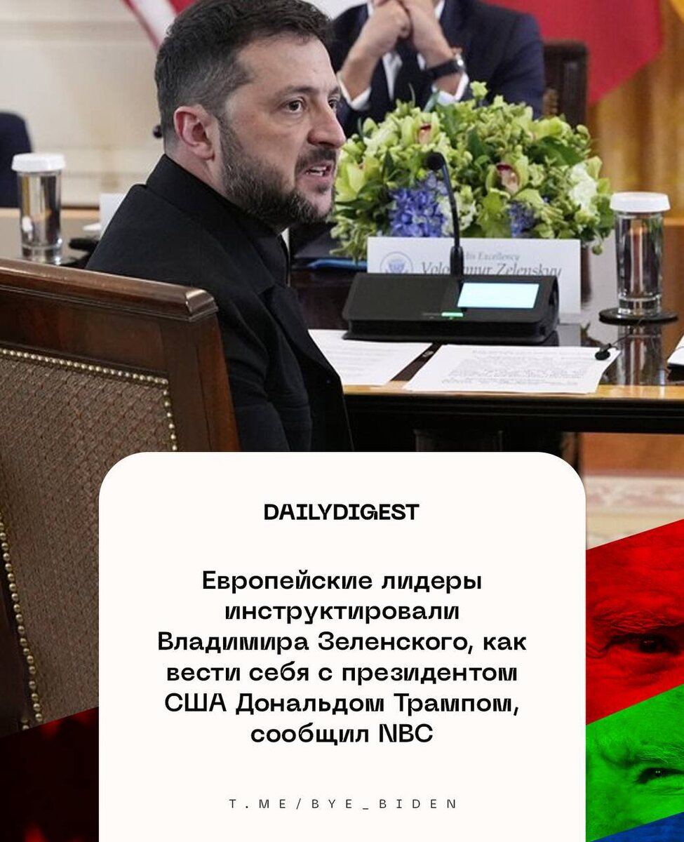 ☑️ Главные новости на утро 19 августа: 🔹Европейские лидеры инструктировали Владимира Зеленского, как вести себя с президентом США Дональдом Трампом, сообщил NBC. 🔹Мерц заявил, что Путин и Зеленский встретятся в течение ближайших двух недель. 🔹Гарантии безопасности для Украины уже несколько месяцев разрабатывают 30 стран, сообщил Fox News генсек НАТО Марк Рютте. 🔹Киев ясно заявил о своем желании приобрести по меньшей мере десять систем ПВО Patriot в рамках сделки с США, а также ракеты и другое военное оборудование — Financial Times. 🔹Зеленский на переговорах с Трампом не отказался от обмена территориями — The Wall Street Journal со ссылкой на европейских чиновников. 🔹Запад надеется на проведение трехсторонней встречи между Россией, США и Украиной в ближайшее время — Макрон. 🔹Членство Украины в НАТО на данный момент не обсуждается — Марк Рютте. 🔹Зеленский на встрече в Белом доме поблагодарил Трампа около 11 раз всего за четыре с половиной минуты — The Washington Post. UP