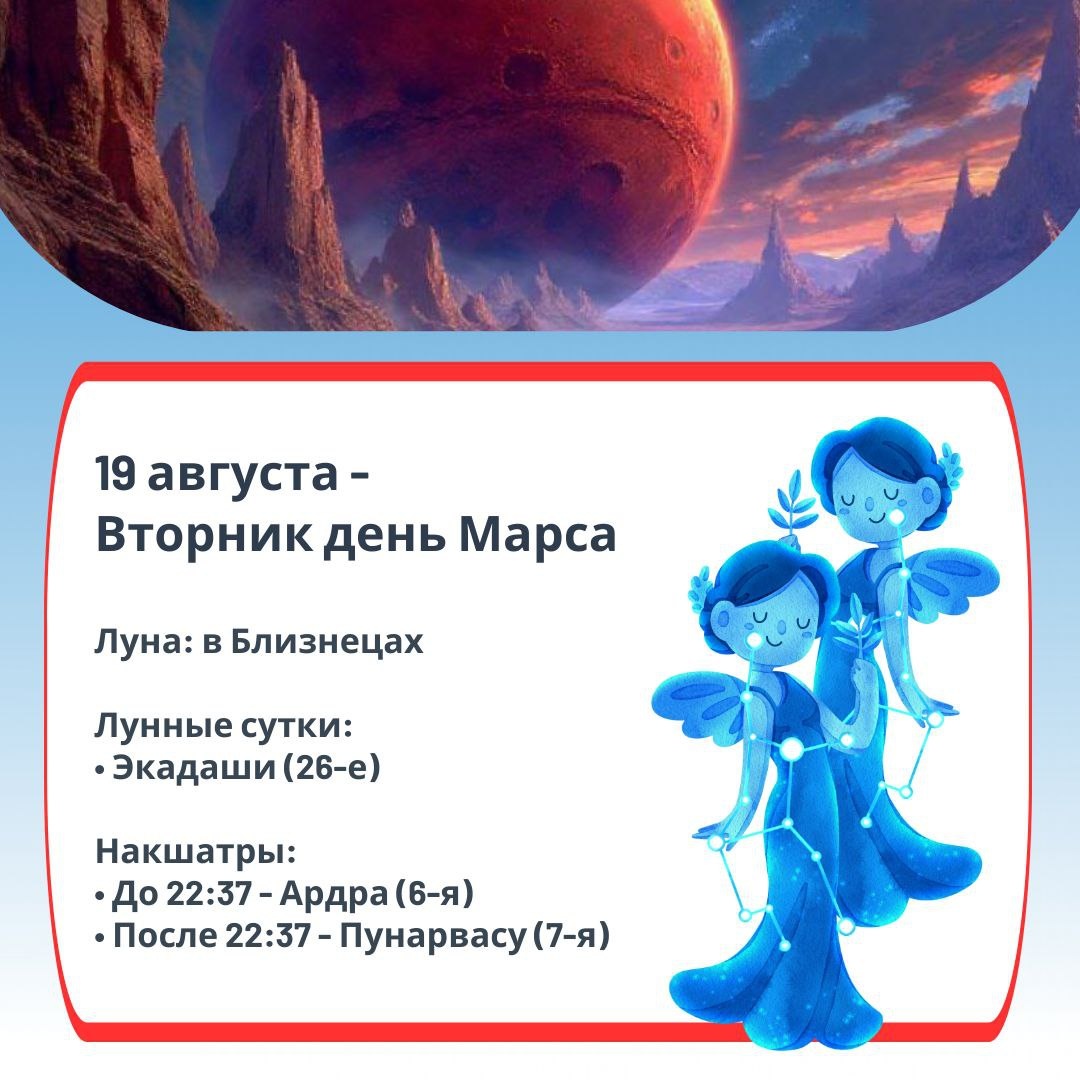 🦝 Астродайджест | Вторник, 19 Августа 2025 | День Марса (Мангалавара