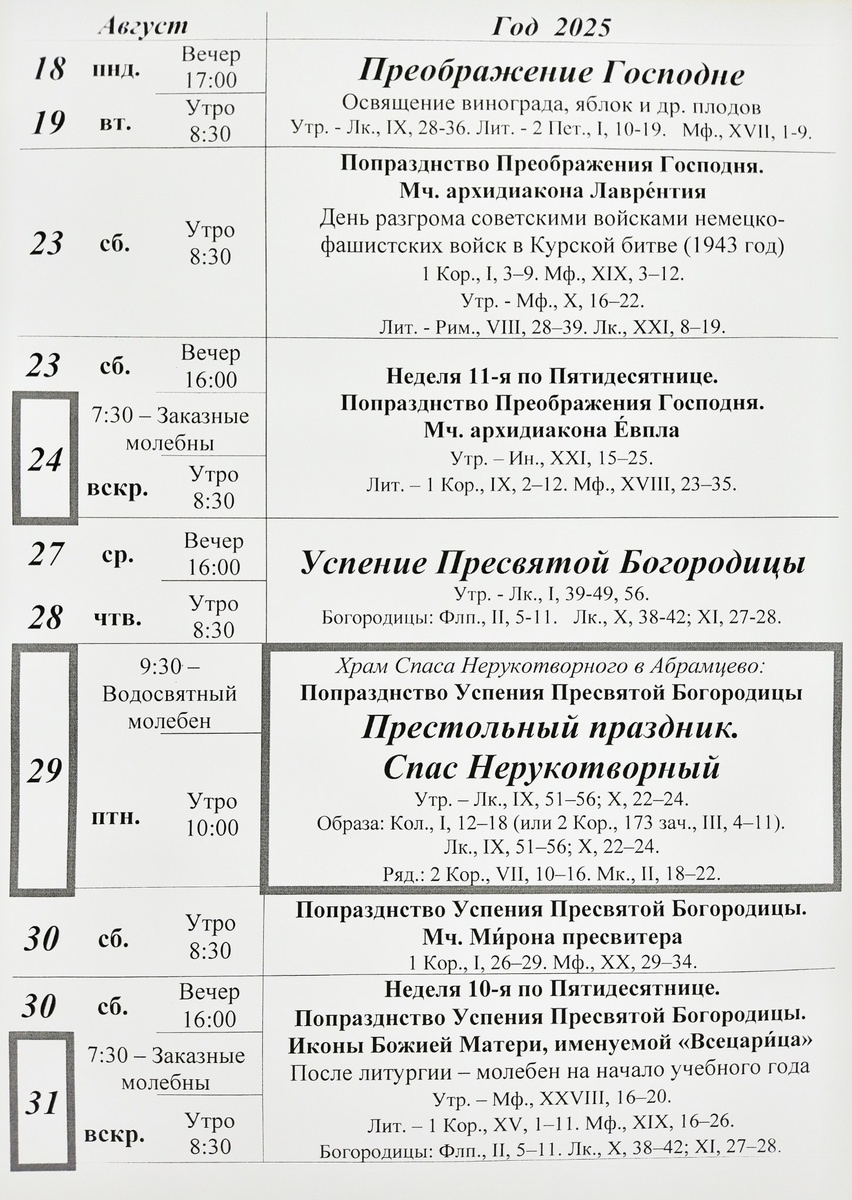 ❗️Расписание богослужений ❗️ в Ахтырской церкви на август