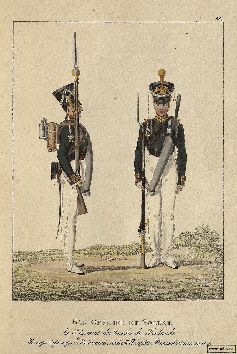 Публикуем фрагмент работы Марина Аполлона Никифоровича - подпоручика полка, 7 сентября в сражении при Бородино ранен. "Не прошло полчаса, - пишет Марин, - как мы увидели перед собою неприятельских кирасир, которые, проскочив первую и вторую линию, в большом беспорядке подскакали к третьей, оканчивающейся на левом фланге нашим полком. Мы приняли гостей не совсем вежливо: Подпустя на пистолетный выстрел, бросили на них батальный огонь: и ни один уже из дерзких не воротился назад". Марин уточняет: "вдруг видим, несется тяжелая кавалерия, пробилась сквозь две линии и стремительно, на рысях идет прямо на наш полк. Сначала мы её приняли за своих кирасиров. Но полковник Штевен отдал спешную команду: Каре против кавалерии! Подпустив неприятеля на близкую дистанцию, батальоны финляндцев дали залп передними фасами, кирасиры смешались, и ни один из них не вернулся с поля; оставшихся в живых взяли в плен и, обезоружив, поставили в середину каре." "После полудня неприятель и мы изнеможены были о