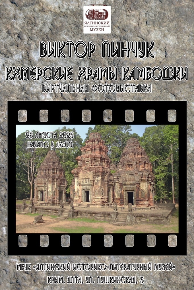 18 августа 2025 года Ялтинский историко-литературный музей приглашает всех желающих на виртуальную фотовыставку «Кхмерские храмы Камбоджи», совмещенную с творческой встречей, где автор экспозиции расскажет о пройденном маршруте, приключениях одиночной экспедиции, ответит на вопросы по теме.