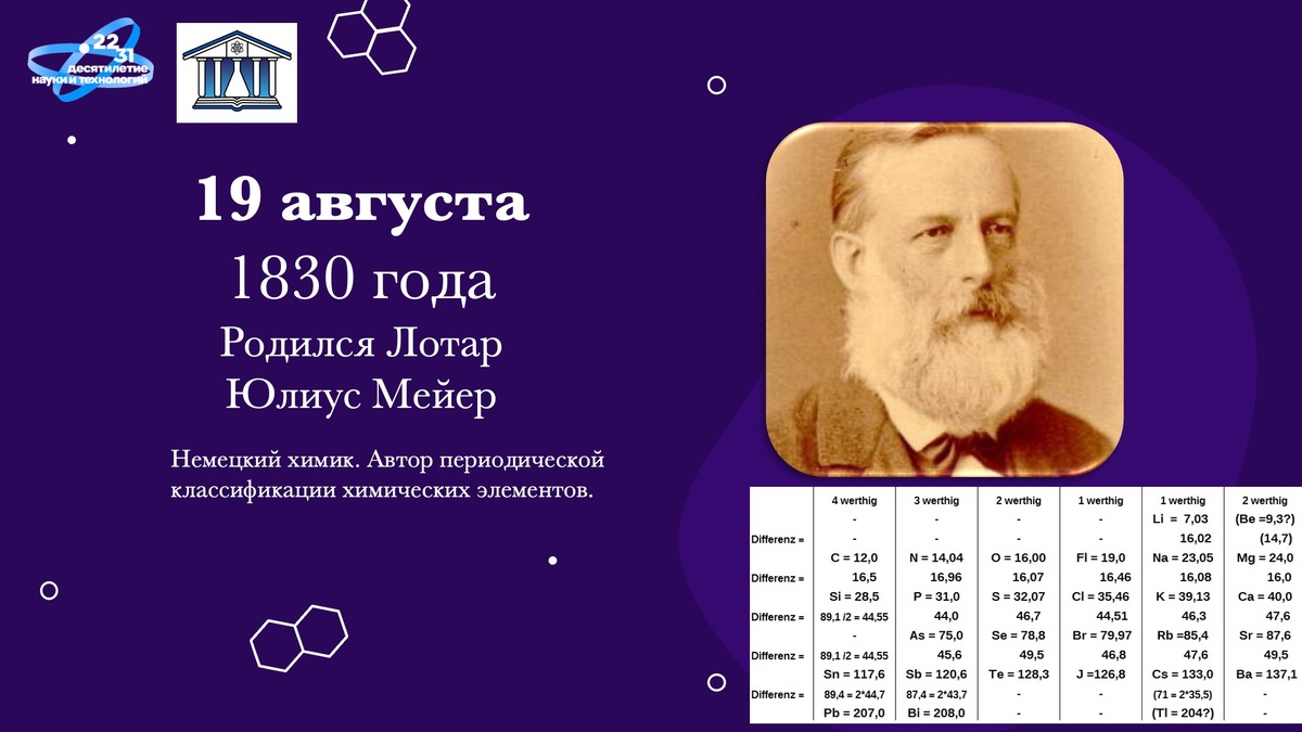 Сегодня исполняется 195 лет со дня рождения немецкого химика, которого часто вспоминают вместе с Дмитрием Ивановичем Менделеевым.