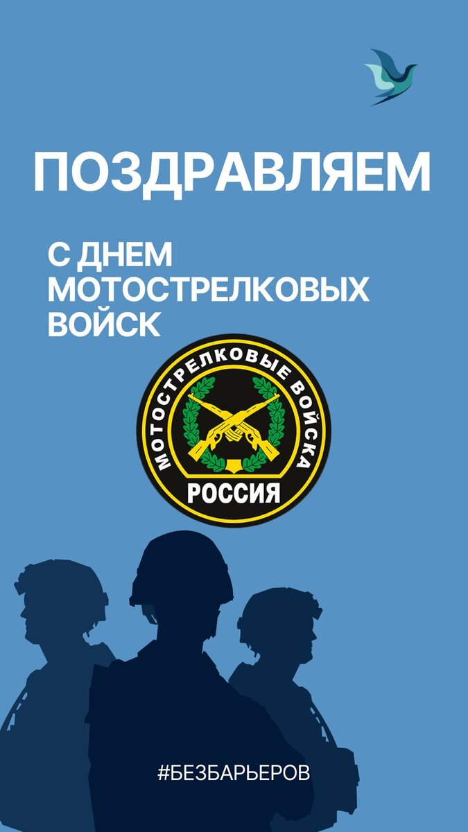 Уважаемые Защитники Отечества, дорогие мотострелки! От всего коллектива «Без Барьеров» сердечно поздравляем вас с профессиональным праздником – Днем мотострелковых войск! Ваша служба – это пример мужества, стойкости и преданности Родине!!! Желаем вам крепкого здоровья, неиссякаемой энергии, успехов в службе и мирного неба над головой! Пусть каждый ваш день будет наполнен уверенностью, оптимизмом и гордостью за свое дело. С праздником!