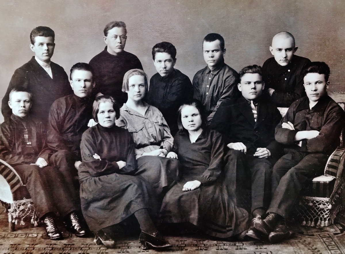 Александр Павлович Белов (верхний ряд, в центре) - учащийся советско-партийной школы. Вологда, 1928.