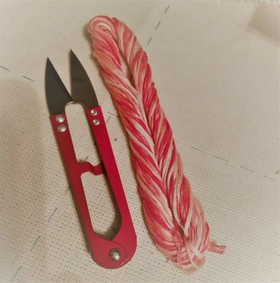 Сама идея появилась внезапно и была воплощена буквально за два дня с учетом всех подготовок и промежуточных этапов. Первый этап - окрашивание ниток. Основой для этого эксперимента стали обычные белые восьмиметровые мулине завода им. Кирова и красная краска по ткани от "Фабрики фантазий". Получились плавные переходы от белого до насыщенного морковного цвета. Второй этап - выбор схемы. Конечно, если это валентинка, то кроме сердца ничего не рассматривалось. Правда, позже хочется попробовать в таком стиле выполнить другие простые и более сложные геометрические формы. Схему подобрала в поисковике, автора так и не нашла (если знаете, чья она, то напишите - оставлю гиперссылку), пока считаем народным творчеством. Ткань - небольшой кусочек заранее обмётанной двунитки (бюджетная, прочная, немного грубоватая ткань, обычно использую ее для вышивки, в которой не очень важны небольшие расхождения в соотношении высоты и ширины крестика). Вышивалось очень просто и быстро, отдых и медитация в чистом