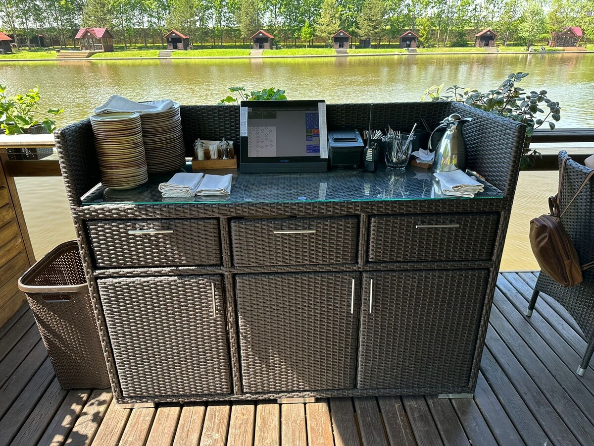 Комод- станция официанта из исскусственного ротанга для ресторана в г. Подольске.