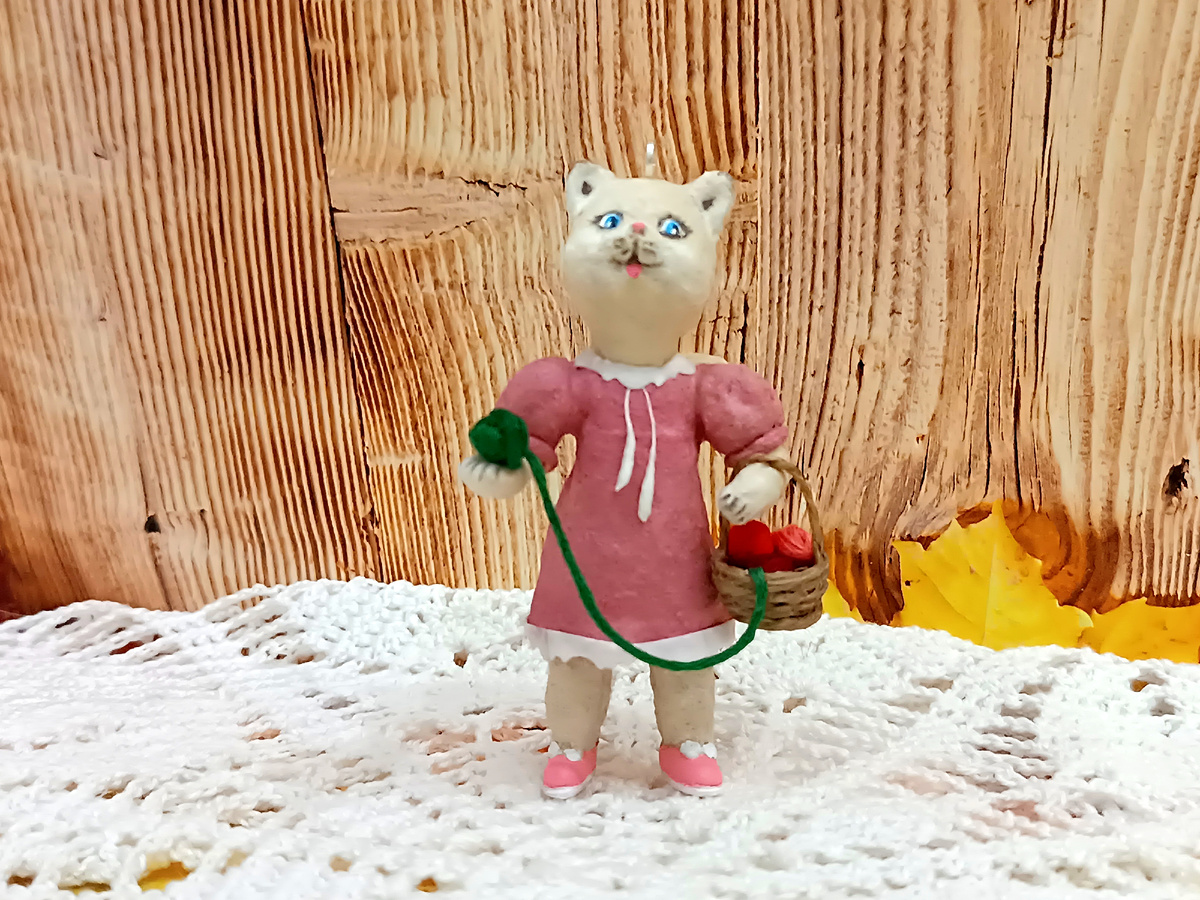 Моя кошечка - в летнем платьице, поэтому ножки и попа ее останутся открытыми. Значит, встает задача скомбинировать наряд так, чтобы смотрелся эстетично и снизу, и сверху))). И мне придумалось нарядить кошечку в трусики с рюшами. Самые простые, просто, чтобы слегка выглядывали из-под платьица и дополняли общий наряд. Трусики вылепливаем из белой льняной ваты с помощью клейстера. Заодно наращиваем и формируем пухлую попу. Завершат изделие рюшечки вокруг ножек. Их я вырезала фигурными ножницами из ватной бумаги и приклеила полоски по контуру: После того, как кошечка наденет платьице, трусики почти не будут видны из-под подола, но если крутить игрушку со всех сторон, то роль их будет важной. Простенькая, но необходимая деталь гардероба! Видео процесса здесь: Спасибо за просмотр, до встречи в следующей части!