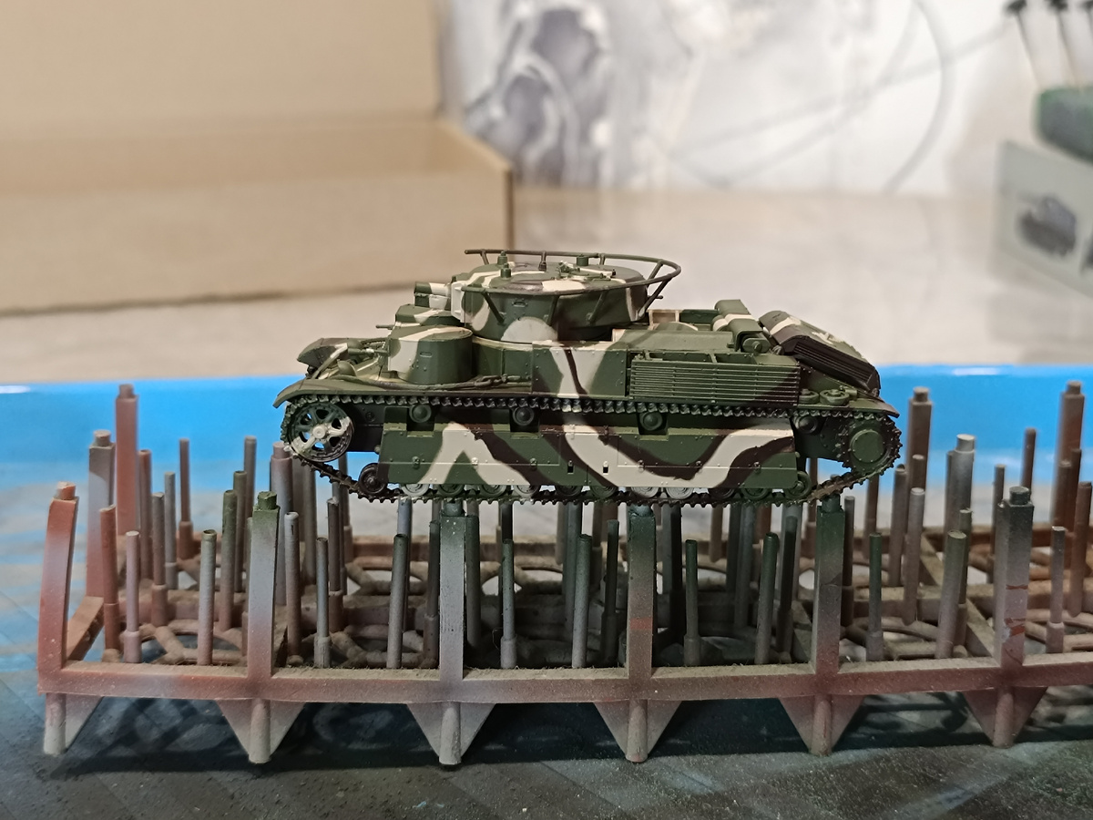 Да, второе название - это полное название САУ Sturer Emil. Суровый немецкий нейминг. У нас тоже есть свои сокращения по индексам ГРАУ (Главное ракетно-артиллерийское управление), но все же они проще. Но это все лирика, сегодня краткий отчет по красочным работам с двумя моделями в масштабе 1/72 Первым делом добил камуфляж на Т-28. После окончания камуфлирования Т-28 я перешёл к самоходке Сначала выкрасил настил пола рубки. Не смотрите, что так ярко он выделяется, потом все равно будет затонирован смывкой, тогда же и зазоры между досок будут более явными Затем окрашиваются мелочи - поддомкратники, шанцевый инструмент и огнетушители. Красным лаком обозначаю стекла стоп сигналов. Следующий шаг - сборка модели и подкраска. Но надо наведаться в художественный магазин и обновить мелкокалиберные кисти...