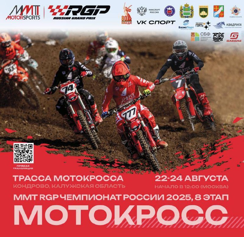 ФИНАЛЬНЫЙ ЭТАП MMT RGP ЧЕМПИОНАТА РОССИИ ПО МОТОКРОССУ 2025 В КОНДРОВО: РАСПИСАНИЕ С 22 по 24 августа, в городе Кондрово (Калужская область), на родине легендарного российского гонщика Евгения Бобрышева, состоится финальный, восьмой этап MMT RGP Чемпионата России по мотокроссу 2025 года, Кросс национальных команд РФ, а также Кросс национальных юниорских команд. Программа соревнований доступна на нашем сайте НАИКОМ АРЕНА #российскиймотокросс@naikomarena #чемпионатроссиипомотокроссу@naikomarena