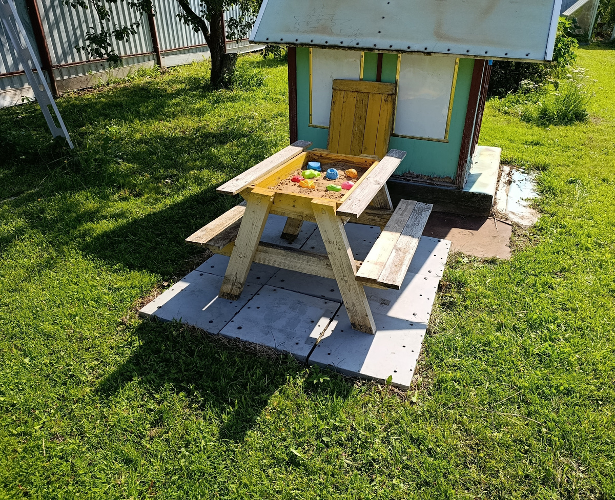 Ещё вроде бы совсем не давно делал для детей этот стол, но время летит и стоит он теперь бесхозный, и разобрать жалко. Посмотрите. Моим детям очень нравилось за ним играть, а мне нравилось, что им не приходилось делить песок с соседскими котами и их попы были на скамейке, без песка в труселях ;) Мои поделки: https://dzen.ru/id/679c72620d120b0ce90a96c6