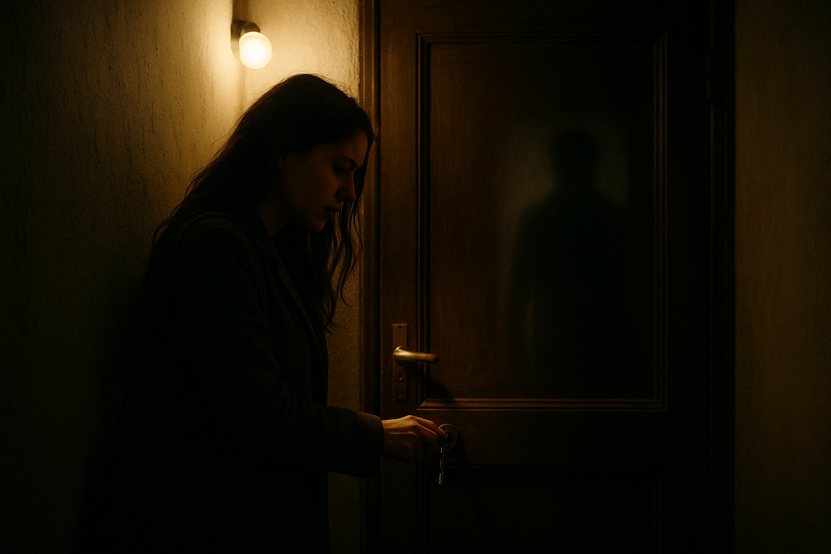 Мысль, что это может быть просто усталость и дрожащие руки, мелькнула и тут же исчезла. В следующую секунду из глубины квартиры донёсся еле уловимый звук — словно кто-то передвинул стул или задел пол. Анна вздрогнула, холод пробежал по коже. Сердце с глухим ударом толкнуло в грудь, ладони стали влажными. Она прижалась плечом к двери, стараясь уловить хоть что-то, и одними губами, почти беззвучно, прошептала: