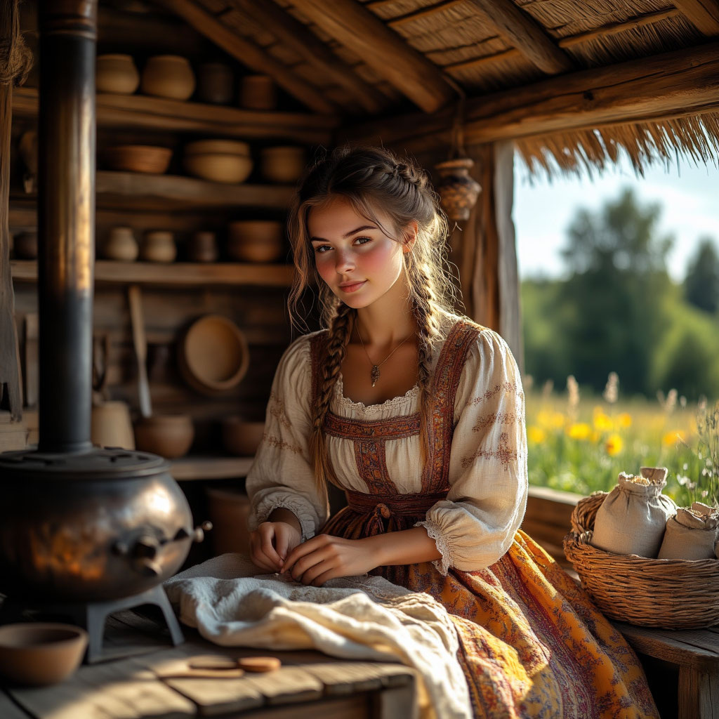 Ольга стояла с деревянным ведром в руках, чувствуя, как прохладная вода наполняет сосуд. Вокруг тихо журчал ручей, переливался солнечный свет в каплях влаги, создавая маленькие радуги. Девушка погрузилась в свои мысли, слушая пение птиц, которые с утра пели свои песенки, словно ненавязчиво напоминая о жизни за пределами деревни и тяжёлых дел.