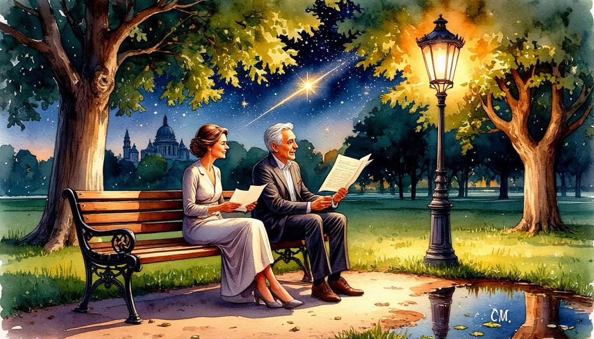 Неожиданная встреча Тёплый августовский вечер окутывал старый городок мягким сумеречным светом. Марина сидела на скамейке в парке, наблюдая, как последние лучи солнца играют в кронах вековых лип. В руках она сжимала письмо - то самое, что получила сегодня утром после двадцати лет молчания. "Дорогая Марина, я буду ждать тебя сегодня вечером в нашем месте..." Она вздрогнула, услышав шаги. Из-за поворота аллеи появился он - Сергей. Время посеребрило его виски, добавило морщинок у глаз, но взгляд остался таким же пронзительным, как двадцать лет назад. · Ты пришла, - тихо сказал он, останавливаясь перед ней. Марина почувствовала, как учащенно забилось сердце. Столько лет она старалась забыть этот голос, эти глаза... Воспоминания Они сидели рядом на старой скамейке, между ними - целая жизнь. Сергей первым нарушил молчание: · Помнишь, как мы здесь познакомились? Как можно было забыть? Лето 1998 года, она - студентка художественного училища, он - молодой архитектор, приехавший в городок восста