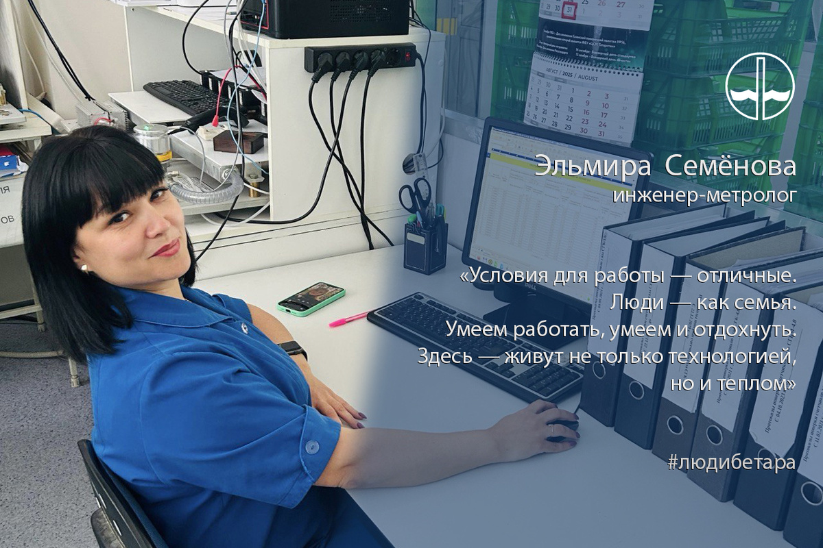 Инженер-метролог Эльмира Рамильевна Семёнова на БЕТАРе уже 15 лет. Она приехала из Хабаровска — дальнего, шумного, почти другого мира. А привёл её на завод папа, Рамиль Рашитович Хуснулгатин, водитель БЕТАРа. Сказал: «Идём, покажу, где уважают труд и держат слово». Так Эльмира и оказалась на производстве, в метрологической службе, где и осталась — на 15 лет и, как говорит, "на своём месте". Она занимается поверкой счётчиков воды и газа, следит за метрологическими характеристиками, и знает: за каждой цифрой — ответственность. «Здесь всё родное. Каждое оборудование — как знакомый ритм. Всё на своём месте. И ты на своём месте» Работа с приборами — как ювелирная настройка часов: важна и точность, и внимание, и аккуратность движений. Она говорит просто: «Условия для работы — отличные. Люди — как семья. Умеем работать, умеем и отдохнуть. Здесь — живут не только технологией, но и теплом». Завод стал не просто местом работы — домом, в котором она выросла как специалист, где прошли важные годы