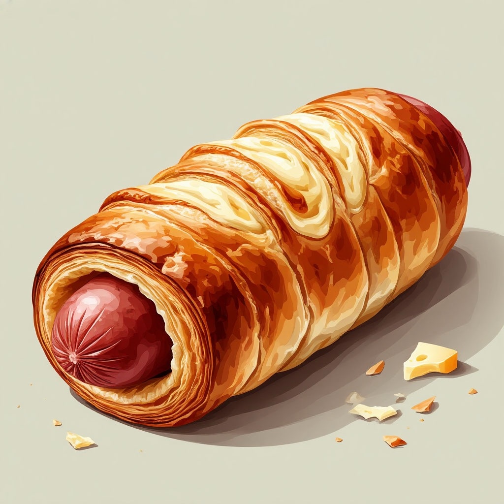 🍕 Сосиски в слоёном тесте с сыром 🧀 Ингредиенты: Готовое слоёное дрожжевое тесто (2 листа) Сосиски (по количеству порций) Сыр твёрдых сортов (нарезать тонкими ломтиками) 2 яйца (только желток для смазывания) Приготовление: Подготовка теста: Разморозьте тесто при комнатной температуре Разделите на 8 равных частей Раскатайте на тонкие полоски Формирование: Выложите на тесто сыр и сосиску Заверните в полоску теста Край смажет желтком, чтобы не развернулось Выпечка: Выложите на противень Смажьте желтком для золотистой корочки Разогрейте духовку до 200°C Выпекайте 15 минут до румяной корочки Совет: Дайте готовому блюду немного остыть перед подачей — так будет вкуснее 😋 #выпечка #сосискивтесте #рецептдня #домашняявыпечка #вкусноибыстро