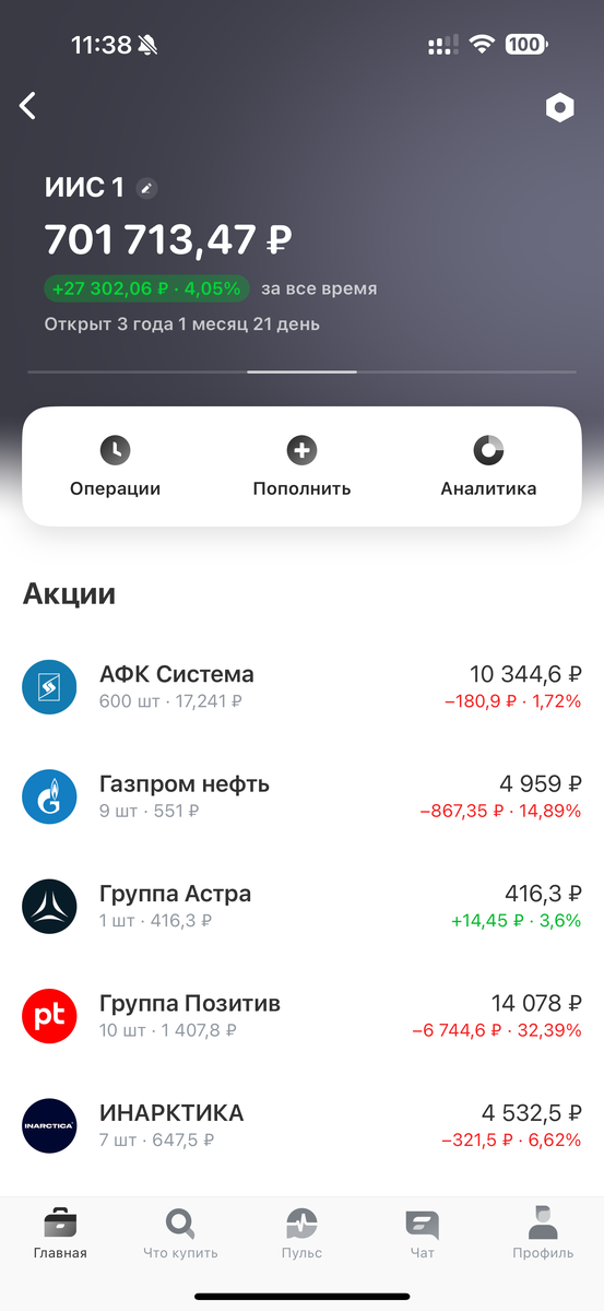 Доброго утра! Я вот уже за компом, выдалась свободная минутка. Спешу о новостях рассказать, хотя какие там новости, так, текущие изменения). Приятно, когда они в мою пользу. Иви вернул 399 рублей. Ура! Я сегодня снова сократила долги, Дважды ура! Каждый день закидываю по 100 рублей на каждую кредитку. Правда, денег почти не осталось. Жду со дня на день небольшие поступления с фриланса. буквально сегодня-завтра. Сегодня ещё тащить собакена на Узи сердца и к кардиологу - заключение перед операцией получать. Ничего, справлюсь. Сегодня глянула на свой брокерский на Тинькофф - ИИС перевалил за 700 тысяч - приятно. До конца года закрывать его точно не планирую, чтобы получить вычет. 26 тысяч от государства тоже не лишние. Так что пока норм иду. ВА натяг , как обычно, но норм. Я вот что тут подумала, почитала коллег-блогеров с Дзена. Всё правильно написано в умных книжках и прочих пособиях "Как стать финансово независимым". Надо сначала подушку собрать в размере 3-6 месяцев, потом закрыть