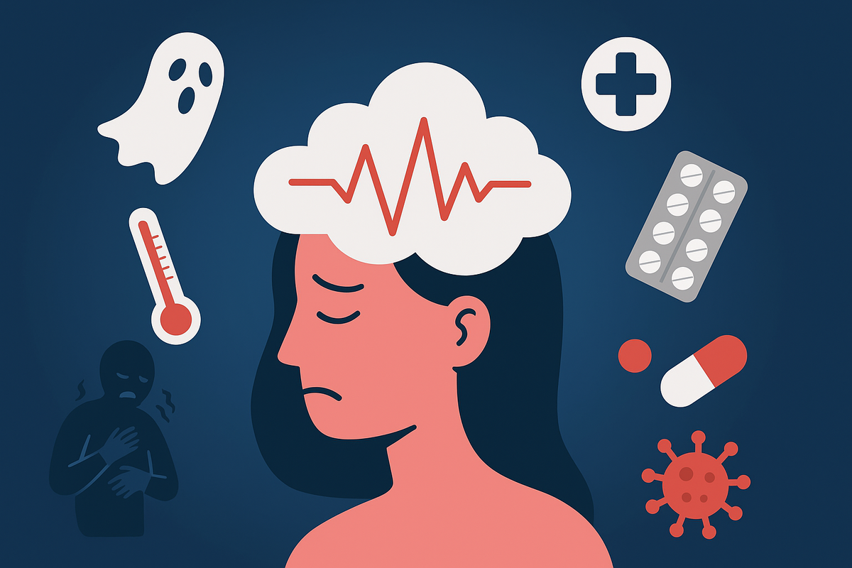 Психологи этот феномен называют соматоформными расстройствами. Если проще — мозгу так страшно, что он генерирует реальные симптомы, которых нет. Проявляется это и как ипохондрия: когда каждый непонятный зуд — признак скорой беды. Известен эффект “белого халата”: у большинства давление поднимается в кабинете врача, потому что мозг сразу готовит организм к самому страшному — даже если тело здорово, разум рисует картину болезни.