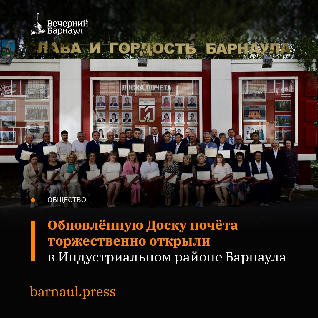 Сегодня, 19 августа, в преддверии 295-летия Барнаула, у здания администрации Индустриального района торжественно открыли Доску почёта. На неё занесли имена 20 людей и 6 коллективов, внёсших значительный вклад в социально-экономическое развитие этой территориальной единицы. Среди них — руководители организаций, водители, преподаватели, медработники, специалисты жилищно-коммунального хозяйства, культуры, строительства и пожарной безопасности. 📌 Глава района Денис Летягин отметил, что Индустриальный район и Барнаул гордятся своими жителями, которые добились выдающихся результатов в труде, учёбе, творчестве и общественной деятельности. Их достижения служат примером для всех. Фото: barnaul.org @barnaul