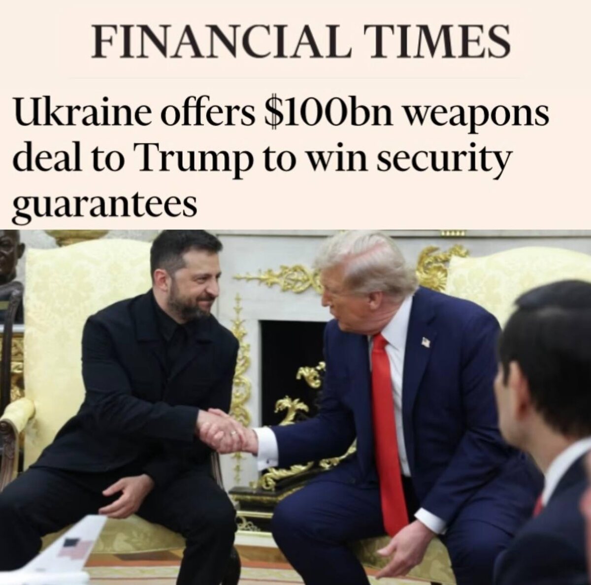 «Украина предлагает Трампу оружейную сделку на $100 млрд в обмен на гарантии безопасности»: Financial Times перечисляет условия, которые