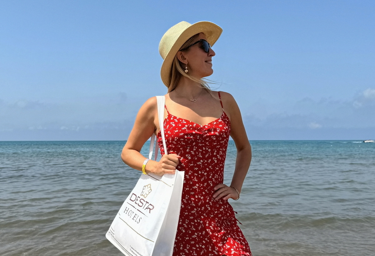 Для крема, мицеллярной воды и других средств использую мини-флаконы. Декоративная косметика на море, как правило, почти не нужна. Я крашусь для съемок и немного на ужин. Многие не красятся вообще – дают коже отдохнуть.