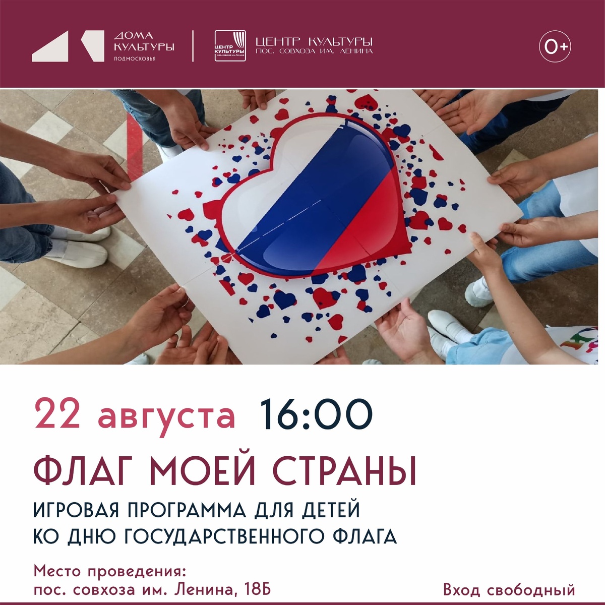 Приглашаем на детскую игровую программу ко Дню флага России! Вас ждёт увлекательное путешествие в историю российского флага, интересные игры и конкурсы, танцы, и много-много радости! Приходите в одежде цветов российского флага и получайте сладкий подарок! #культура #центркультуры #совхозленина #ГоспабликиМО