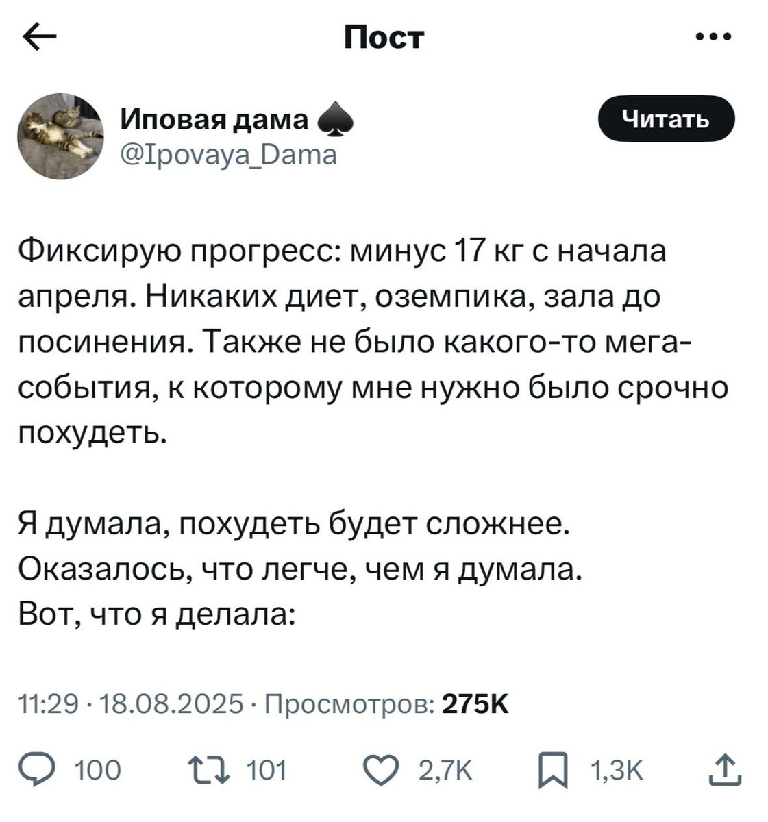 Нашли лучший гайд, как потерять почти 20 (!) килограммов за пару месяцев — твиттерская расписала целую систему лайфхаков для эффективного